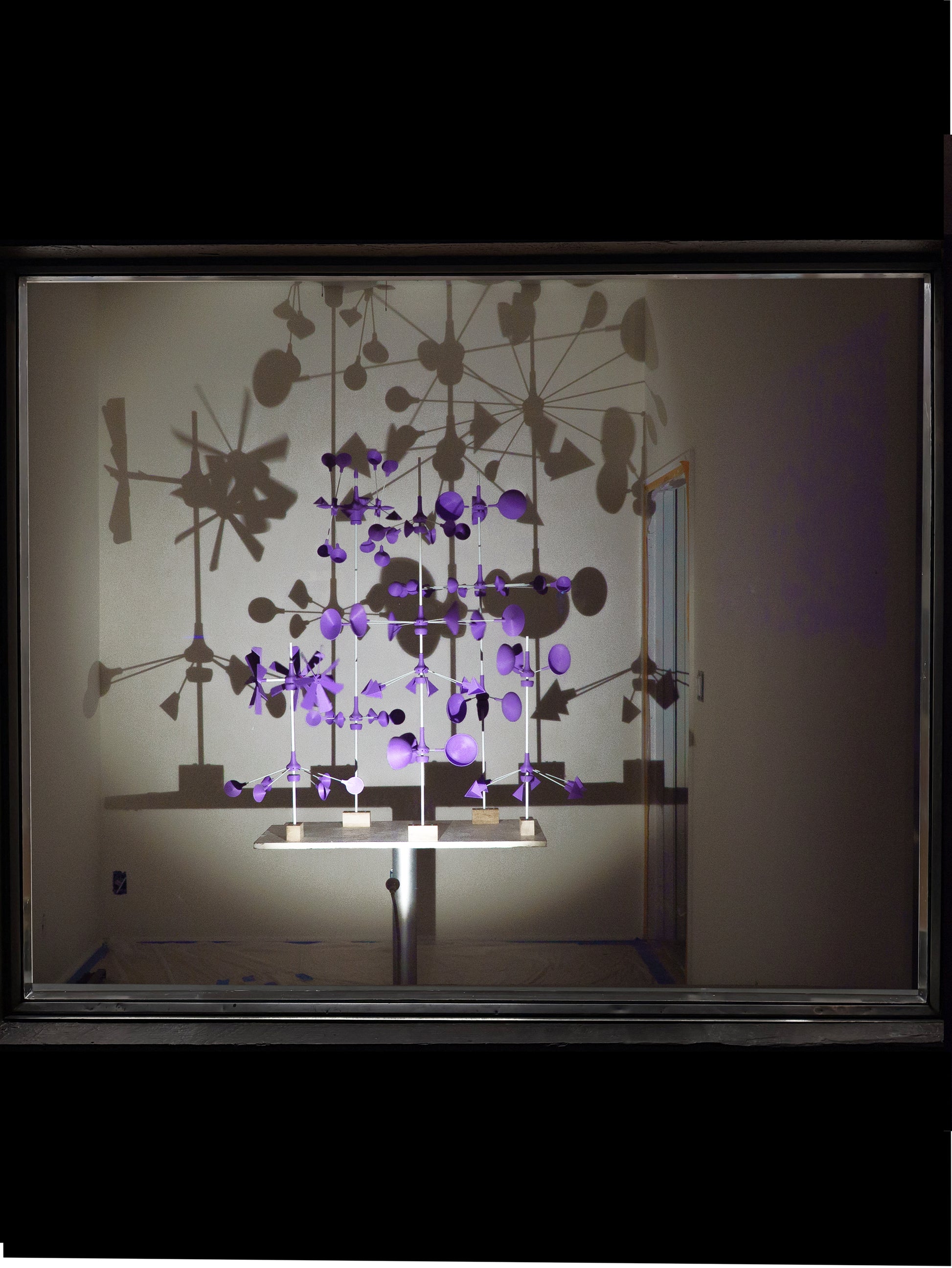 A mesmerizing, kinetic window display by Joel Fox that bridged the closing of Spore Space Gallery and the opening of The Mega Gallery.