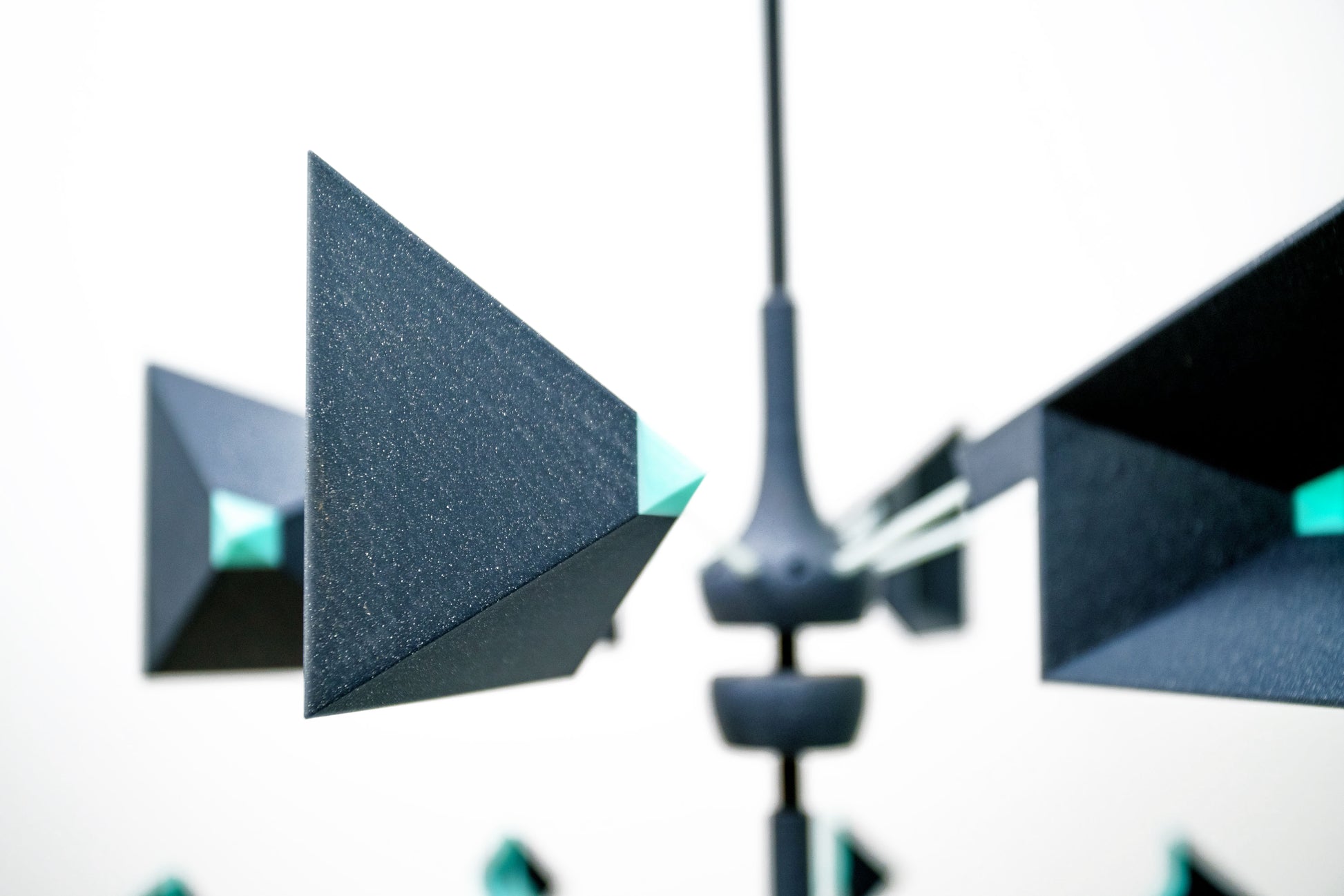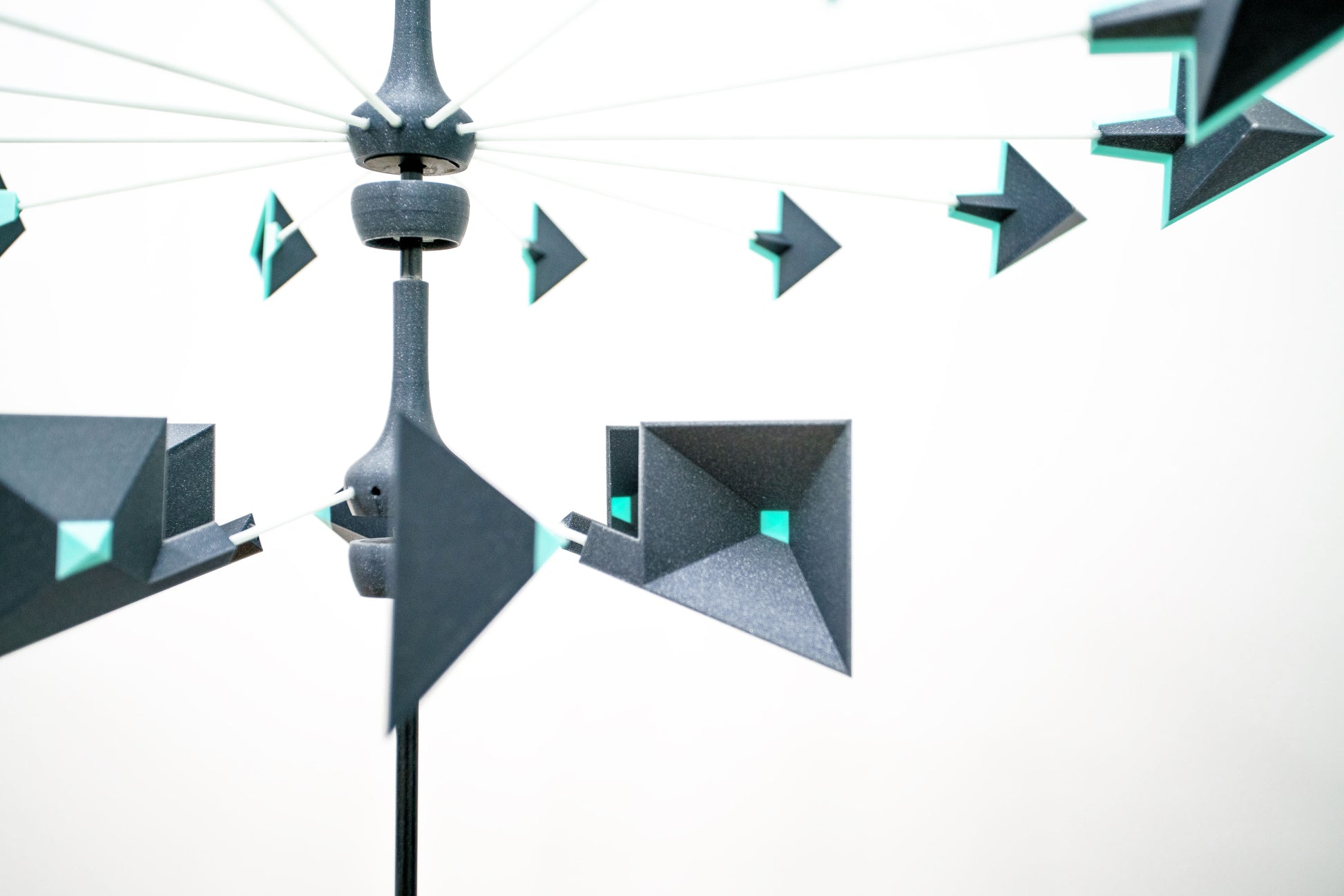 Materials: 3D-printed PLA plastic, fiberglass, and magnets